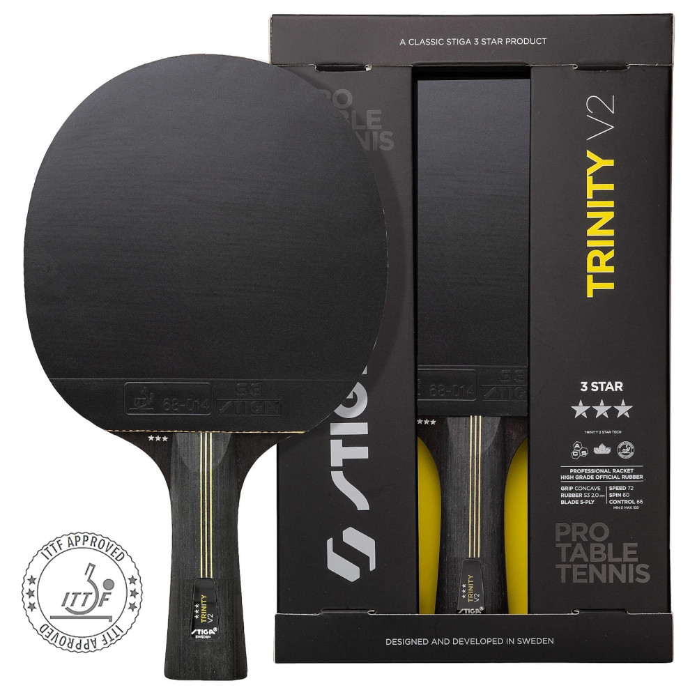 Ракетка Stiga Trinity V2 — це нова та вдосконалена версія популярної ракетки для настільного тенісу Trinity 3-Star, спеціально розробленої для гравців у нападі, які хочуть поєднати швидкість, контроль та точність у своїй грі. Завдяки міцній конструкції та майстерно розробленим функціям, ця ракетка для настільного тенісу підніме вашу гру на новий рівень, як на тренуваннях, так і на змаганнях. Потужна основа виготовлена з п'яти ретельно відібраних шарів деревини, що забезпечує як стабільність, так і вибухову реакцію з кожним ударом. Результатом є ракетка для настільного тенісу, яка дає вам силу, необхідну для домінування в грі за допомогою жорстких, точних атак. Гума найвищої якості, схвалена ITTF, пропонує оптимальне обертання та контроль — ідеально підходить для тих, хто хоче надавати м'ячу обертання та впевнено контролювати гру. Ергономічна увігнута ручка зручно лежить у руці навіть під час тривалих, напружених матчів, забезпечуючи комфорт та міцний хват аж до матч-пойнта. Розроблена у тісній співпраці з гравцями збірної Китаю, Trinity V2 базується на тих самих передових технологіях, що й професійні основи ракеток Stiga, що надає вам доступ до знань аж до найдрібніших деталей. На додачу до всього, ракетка постачається в екологічно чистій упаковці, що підлягає переробленню — свідомий вибір для тих, хто хоче грати стильно та дбайливо. Оберіть Stiga Trinity V2 та зробіть наступний крок у своїй кар'єрі в настільному тенісі з ракеткою, яка поєднує професійну продуктивність та продуманий дизайн.