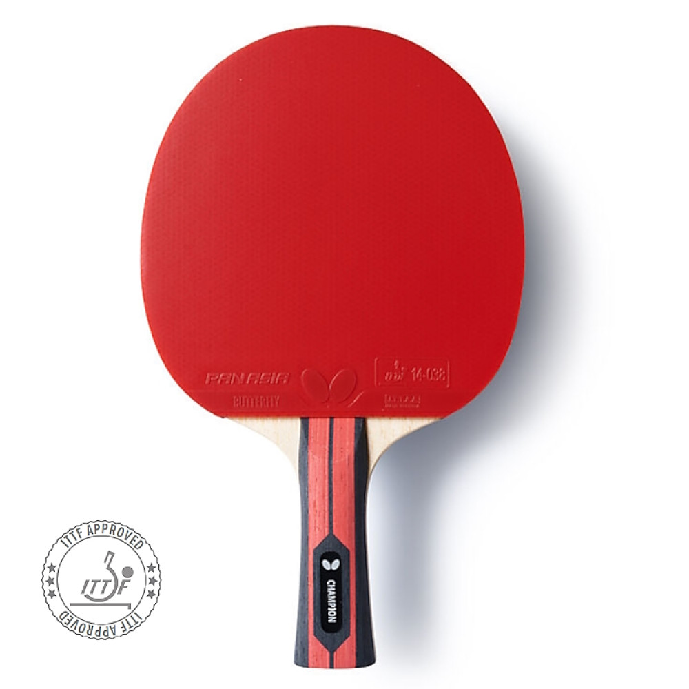 Ракетка для настільного тенісу Team Butterfly Champion розроблена для гравців, які віддають перевагу наступальній грі з орієнтацією на обертання. Гума Pan Asia з губкою товщиною 1,9 мм сертифікована ITTF (Міжнародною федерацією настільного тенісу) забезпечує чудове зчеплення з м'ячем.