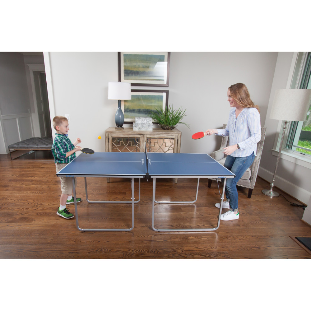 Стіл для настільного тенісу JOOLA Midsize ідеально підходить для тих, хто любить настільний теніс, але має мало місця. Крім настільного тенісу, цей багатофункціональний стіл ідеально підходить для карткових ігор або інших ваших потреб. Окремі половинки можна скласти разом і легко зберігати в більшості шаф або навіть під ліжком.